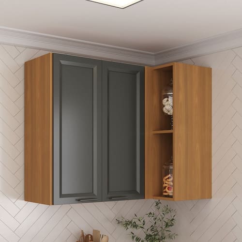 Com amplo espaço interno e gavetas de deslizamento suave graças às corrediças telescópicas, ele é ideal para organizar sua cozinha de forma eficiente. As portas robustas possuem dobradiças reforçadas de 35mm e o armário aéreo com pistão a gás é perfeito para instalação sobre geladeiras ou fogões. Os puxadores em alumínio com pintura epóxi oferecem um toque de design contemporâneo e resistência ao uso diário. Os pés em PVC de 14,5 cm são ajustáveis para maior estabilidade, e os rodapés removíveis facilitam a limpeza do dia a dia.