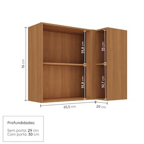 Informações Complementares: Portas de bater almofadadas/molduradas em MDF 4mm, dobradiças de 35mm, prateleira interna, nichos organizadores, puxadores retrô em alumínio.