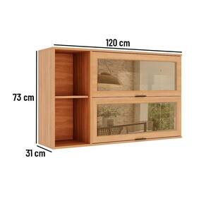 Eleve o estilo da sua cozinha com o Armário Aéreo Telasul Castanha. Este armário de 1200MM de largura conta com 2 portas de vidro e nicho de decoração.