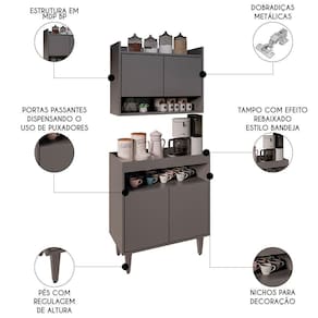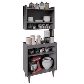 Prático e funcional, o Armário Aéreo Ceci e Balcão Aparador Buffet Lice M24 Grafite, da Mpozenato, é o que você precisa para deixar a seu espaço como sempre quis.