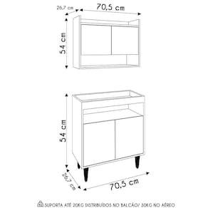 Conteúdo da Embalagem: 1 Armário Aéreo, 1 Balcão Aparador.