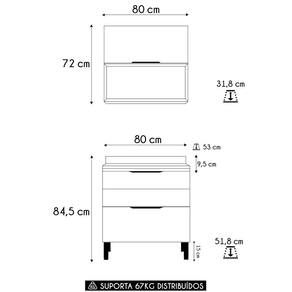 Balcão: 80 cm x 84,5 cm x 51,8 cm.