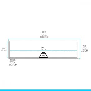 Dimensões do Balcão: Altura: 30 cm Largura: 120 cm Profundidade: 31,5 cm Peso: 13,5 kg