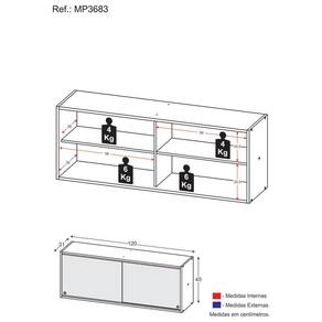 Dimensões do produto montado: Altura: 45cm | Largura: 120cm | Profundidade: 31cm *Você pode consultar as medidas internas na imagem técnica do produto.