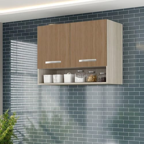 Armario Aereo Cozinha 2 Portas 0,80 Cm Com Nicho Alice Elmo/marrom Hr Móveis