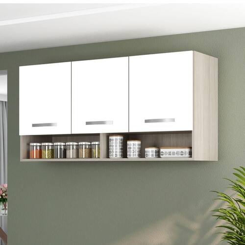 Armario Aereo Cozinha 3 Portas 1,20 M Com Nicho Alice Plus Elmo/branco Hr Móveis