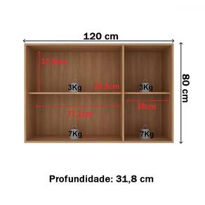 - Peso Suportado nas Prateleiras:: 3 Kg