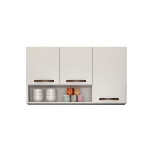 O Aéreo 3 portas Maísa é ideal para organizar seu espaço com praticidade e rapidez. Tem 3 portas com dobradiças metálicas para abrir e fechar com segurança, 1 prateleira e puxadores em abs bronze. O armário possui um design elegante para complementar sua cozinha ou despensa.