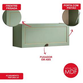 O(a) Armário Aéreo Cozinha 80 Cm Conecta Frizz 1 Porta Mint - Geniaflex é produzido em MDF na escala de brilho Fosco, e possui um grau de dificuldade de montagem: Médio.