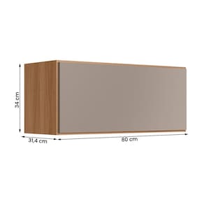 Modelo: Armário Basculante Acacia; Material da estrutura: MDP em 15 mm; Dimensões: 80 cm (L) x 34 cm(A) x 31,4 cm(P) Quantidade de portas: 01 (dobradiças metálicas com pistão a gás e fecho toque); Com puxador: não se aplica; Quantidade prateleiras: Não se aplica; Peso suportado: até 07 kg distribuídos. Requer montagem: Sim (kit montagem incluso); Embalagem do envio: Papelão e plástico;
