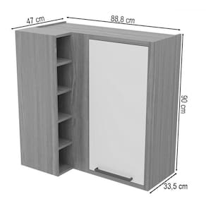 O(a) Armário Aéreo Cozinha de Canto 1 Porta 1 Prateleira 100% Mdf Amêndoa/Cinza - Rio Doce é produzido em 100% MDF na escala de brilho Semi-Brilho, e possui um grau de dificuldade de montagem: Médio.