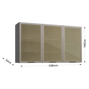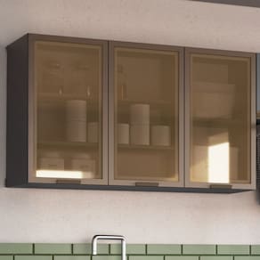 O(a) Armário Aéreo Cozinha Greta 3 Portas com Vidro Cinza - Irm Móveis é produzido em MDP na escala de brilho Semi-Brilho, e possui um grau de dificuldade de montagem: Médio.