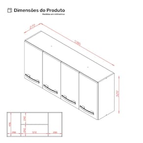 Tipo de Produto: Armário de Cozinha, Multiuso, Aéreo de Parede