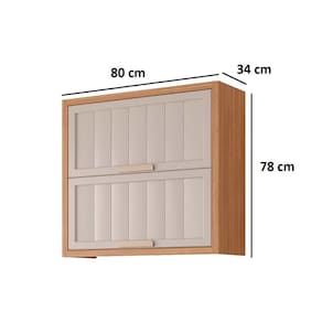Armário Aéreo p/ Cozinha Estela c/2 Portas Basculantes Ripada 80 cm Freijo/Titanium - MGM