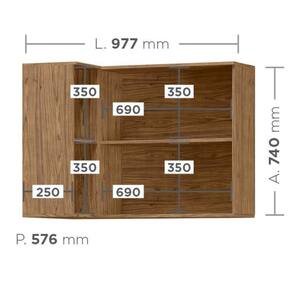 Armário Aéreo de Canto 2 Portas Basculante 2 Nichos Toscana Espresso Móveis Freijó - Marrom