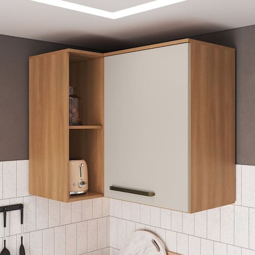 Aéreo de canto Reto Isabelle, produto com ótimo acabamento todo em MDP 15mm, com opção de montagem direita/esquerda, possui uma porta de bater com dobradiças com amortecimento, conta com puxadores modernos de alumínio com as ponteiras em ABS e dois nichos. É um módulo avulso da cozinha modulada Isabelle, ideal para compor sua cozinha da forma que desejar, oferecendo diversas combinações, você pode completar sua cozinha adquirindo outros módulos que são vendidos avulsos. Acabamento da Prateleira: Finish Foil Escala de Brilho da Prateleira: Fosco Acabamento da Porta: Finish Foil Escala de Brilho da Porta: Fosco Material do Puxador da Porta: Alumínio Acompanha Tampo: Não Ambiente Principal: Cozinha Complexidade da Montagem: Média: pode ser montado por mais de uma pessoa e/ou necessite de maior conhecimento para montagem Cor: Freijo/Arenas Cor do Produto: Freijó/Arenas Escala de Brilho: Fosco Espessura do Material da Estrutura: 15 mm Informações Complementares: Total Itens Inclusos: 1 Armário Aéreo, Manual de Montagem e Kit Ferragens Linha ou Coleção: Isabelle Manual de Montagem e Instalação: https://product-hub-prd.madeiramadeira.com.br/911576/documents/24de90e6-e870-4339-b5b7-a351a15eb9a738d20fc1420248is1615manual.pdf Material da Dobradiça/Corrediça da Porta: Aço Material da Porta: MDP Material da Prateleira: MDP Montagem Flex: Não Necessita Montagem: Sim O Balcão Acompanha Pia: Não Origem do Produto: Nacional Peso: 30,85 kg Peso Máximo por Prateleira: 5 kg Possui Pés: Não Possui Portas: Sim Possui Prateleiras: Sim Possui recorte para Cooktop: Não Possui Vidro: Não Recomendações de Uso, Manutenção e Limpeza: Para limpeza do móvel, use uma flanela seca Sistema de Montagem: Parafusos, Cavilhas e Minifix Suporta Até (kg): 25 kg Tipo de Dobradiça da Porta: Soft close Tipo de Puxador da Porta: Externo