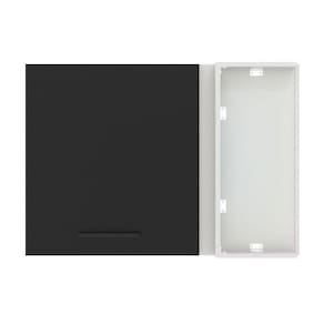 O acabamento da estrutura é branco e a porta é preta. O processo é feito com a Pintura Poliéster ecológica com sete camadas de proteção, exclusiva da Madesa.