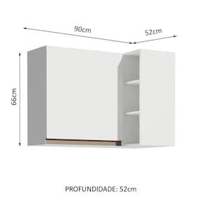 - Um (1) Armário Aéreo com 66 cm de altura x 90 cm de largura x 52 cm de profundidade com uma (1) porta e adega acoplada