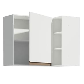 O Armário Aéreo de Canto da linha Reims da Madesa é fabricado com materiais de alta qualidade, como puxador embutido em alumínio e dobradiças metálicas.