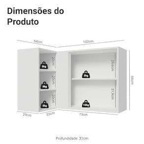 - Um Armário Aéreo de canto com um porta e três nichos acoplados