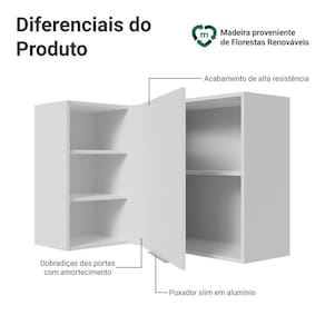 Com design moderno e acabamento branco de alta resistência, este módulo é ideal para acomodar livros, decorações ou itens de uso diário. O armário conta com puxador discreto em alumínio, que agrega um toque de elegância e modernidade.