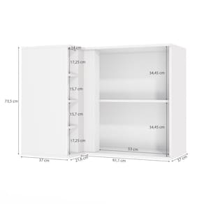 Acabamento: Pintura Brilho | Acabamento da Fita Borda: Papel | Cor: Branco | Dobradiça: Com Amortecimento | Garantia: 3 meses para defeito de fabricação | Matéria-prima: MDF | Peso suportado por cada prateleira: 7 kg | Puxadores: Metálicos | Quantidade de portas: 1 | Quantidade de prateleiras: 4 | Sistema de montagem: Parafuso Philips | Tipo de porta: Bater