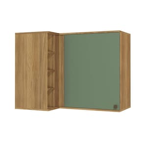 Sua cozinha com toda a beleza e praticidade do Aéreo de Canto N747 da Cozinha Celeste da Kappesberg. Produzido em chapa MDF de 15mm, ele garante robustez, firmesa e qualidade, além de um acabamento perfeito. Com sete camadas de pintura tanto na parte interna quanto na externa, a caixaria possui pintura touch na cor nogueira, contando com a textura dos veios da madeira, enquanto que a porta, com pintura na cor verde, possui acabamento fosco. Uma combinação marcante e moderna, que dará ainda mais destaque ao seu espaço, deixando sua cozinha perfeita. A escolha ideal para composições em "L", o aéreo possui uma porta e duas prateleiras, além do espaço para organizar louças e mantimentos e ainda, otimizar espaço. Podendo ser montado para ambos os lados e fechando uma ótima combinação com o balcão de mesmo tamanho, o destaque fica para as dobradiças com amortecimento, garantindo um fechamento suave e sem ruídos, incluindo mais durabilidade. E com nicho garrafeiro, você terá uma adega particular em sua casa, tornando cada momento muito especial, que somado ao puxador metálico quadrado na cor dourada completam o design e a qualidade da cozinha, deixando seu ambiente ainda mais estiloso. Renove seu espaço e o deixe ainda mais completo com a Cozinha Celeste da Kappesberg.