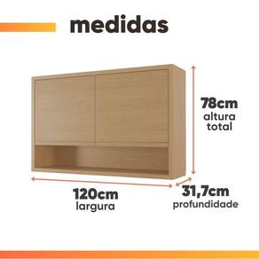 Importante sobre a entrega: A entrega é realizada até a portaria ou porta de entrada do endereço indicado, desde que o acesso seja permitido. Para locais com portaria, a entrega será feita no piso térreo. Não realizamos montagem, desmontagem, transporte por escadas ou içamento. É responsabilidade do cliente verificar se as dimensões do produto são compatíveis com portas, elevadores e corredores. Evite imprevistos: confira todos os detalhes antes de concluir sua compra. MEDIDAS:: A = 78 cm L = 120 cm P = 32 cm | MEDIDAS NICHO:: A = 21,9 cm L = 114 cm P = 29,7 cm | PRATELEIRAS SUPORTAM ATÉ:: 15 kg | NICHO SUPORTA ATÉ:: 15 kg | PESO SUPORTADO:: 30 kg | PESO:: 27,5 kg | MODELO:: Armário Aéreo De Cozinha 1,20m 2 Portas e Nicho 100% Mdf Cléo Carvalho | MARCA:: Nesher | COR:: Madeirado | MATERIAL:: MDF | ESPESSURA DO MATERIAL:: 15 mm | PINTURA:: UV de alta qualidade | ACABAMENTO:: Fosco | PORTAS:: 2 | TIPO DE PORTA:: Bater | DOBRADIÇAS:: Slow Motion | NICHOS:: 1 | PRATELEIRAS:: 2 | PUXADORES:: Cava | SISTEMA DE MONTAGEM:: Parafusos, minifix e cavilhas | DIFERENCIAIS:: Design elegante e moderno com estrutura 100% MDF / Pintura UV de qualidade / 2 prateleiras e 1 nicho amplo para melhor armazenamento / Portas com dobradiças Slow motion. | ITENS INCLUSOS:: 1 armário aéreo, 1 manual de montagem, 1 kit parafusos | INSTRUÇÕES E CUIDADOS:: Para maior durabilidade, recomendável que a limpeza dos móveis seja feita com pano limpo e seco. Não usar produtos químicos ou abrasivos. | GARANTIA:: 3 meses pelo fabricante. | Importante sobre a entrega:: A entrega é realizada até a portaria ou porta de entrada do endereço indicado, desde que o acesso seja permitido. Para locais com portaria, a entrega será feita no piso térreo. Não realizamos montagem, desmontagem, transporte por escadas ou içamento. É re | Altura da embalagem: 10 cm | Comprimento da embalagem: 134 cm | Largura da embalagem: 62 cm | Peso da embalagem: 25,550 g | Tipo da embalagem: Sem embalagem adicional | Cor: madeirado