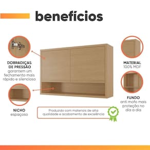 Armário Aéreo De Cozinha 1,20m 2 Portas E Nicho 100% Mdf Cléo Madeirado Nesher Madeirado