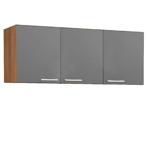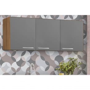 Armário de Cozinha Aereo 3 portas 120cm Carol cor Mel e Cinza - Rud Rack