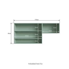 Armário Aéreo 3 portas, um acessório/complemento da sua cozinha, mostrando utilidade, modernidade e beleza com qualidade superior. A linha Atena é modulada e você pode compor o ambiente com sua necessidade, otimizando espaços e organizando sua cozinha. Acabamento em impressão texturizada touch fosco UV, confeccionado em MDP 15 mm e puxadores ABS. Acabamento da Porta: Pintura Texturizada UV Acabamento da Prateleira: Finish Foil Ambiente Principal: Cozinha Complexidade da Montagem: Média: pode ser montado por mais de uma pessoa e/ou necessite de maior conhecimento para montagem Cor: Verde Bellagio/Snow Cor do Produto: Verde Bellagio/Snow Cor Flex: Não Cor Interna: Verde Bellagio Escala de Brilho: Fosco Escala de Brilho da Porta: Fosco Escala de Brilho da Prateleira: Fosco Informações Complementares: 5 kg por prateleira e/ou compartimento Itens Inclusos: 1 Armário, Kit Ferragens e Manual de Montagem Linha ou Coleção: Atena Manual de Montagem e Instalação: https://cdn2.madeiramadeira.com.br/atributo/casamia/1253646-580-7899467135331-manual.pdf Material da Dobradiça/Corrediça da Porta: Metálica Material da Porta: MDP Material da Prateleira: MDP Material do Puxador da Porta: ABS Material Principal: MDP Montagem Flex: Sim Necessita Montagem: Sim Origem do Produto: Nacional Peso: 25.3 Peso Máximo por Prateleira: 5 Possui Espelho: Não Possui Possui Pés: Não Possui Portas: 03 Possui Prateleiras: 02 Recomendações de Uso, Manutenção e Limpeza: Deve ser feita com pano macio e seco ou levemente umedecido com água e sabão neutro. Não devem ser utilizados abrasivos como palha de aço e objetos cortantes. Sapatas Niveladoras: Não Sistema de Montagem: Parafusos e cavilhas Suporta Até (kg): 15 Tipo de Dobradiça/Corrediça da Porta: 35 mm Tipo de Porta: Misto (Bater e Basculante) Tipo de Puxador da Porta: Externo