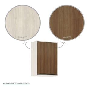 O Armário Aéreo com 60cm Linea foi desenvolvido aliando beleza e praticidade ao seu ambiente. Conta com 2 portas de abrir, 2 prateleiras internas, puxador em alumínio gola. Acompanha sistema para fixação na parede. Características: Corpo/Caixaria: MDP Pátina FF (Finish Foil) Frontais: Avela FF (Finish Foil) Frontais: Mocca Laca Dobradiças: Metálicas 35 mm Slowmotion (com amortecedor) Puxadores: Alumínio Gola - Inox Portas: 2 Prateleiras: 2