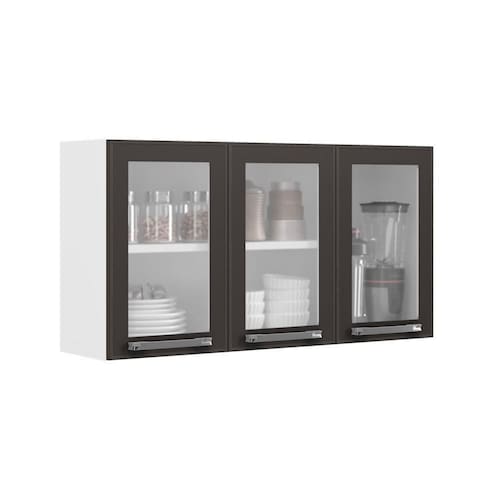 Características do Armário Aéreo de Cozinha Grafite 3 Portas com Vidro Florença: