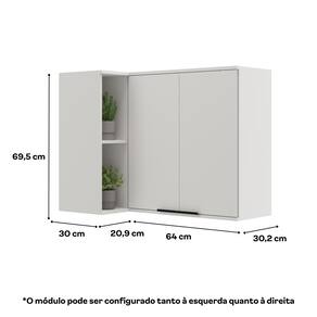 Especificações da modulação: Medidas totais: Largura: 94 cm | Altura: 69,5 cm | Profundidade: 52 cm Peso total: 28Kg Material do produto: MDP