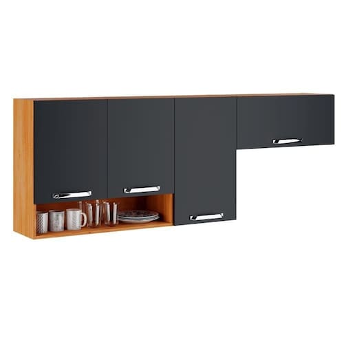 Armário Aéreo de Cozinha 3 Portas 1 Nicho Cinamomo e Grafite VegasDescrição do Produto: