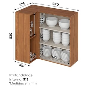 Armário Aéreo de Cozinha Requinte Canto Reto 1 Porta Nature – Henn