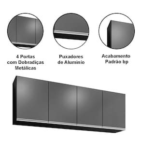 Armário Aéreo de Geladeira 4 Portas 160 cm Toledo - Preto | Cinza