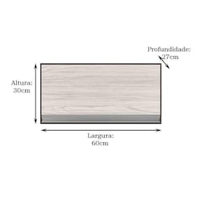 Descrição do Produto: O Armário Aéreo Andréia aproveita aqueles pequenos espaços vazios que ficariam perdidos na parede da cozinha ou em cima da geladeira. Além dele preencher tal espaço ele te proporciona um armazenamento extra que é primordial para o bom funcionamento da sua rotina diária!!! É muito utilizado para separar os temperos de alguns alimentos, alguns lanches da criançada, seus produtos fitness, eletros, pratos, potinhos, panos de prato, tigelas, panelas, xícaras, travessas, taças, copos e principalmente aquele conjuntinho especial que você gosta tanto! Nossos produtos permitem que você monte sua cozinha com a sua necessidade de espaço! Compre agora mesmo e aproveite! Dimensões do Produto Montado: (Altura x Largura x Profundidade): 30 x 60 x 27 cm. Peso: 7 kg. Características do produto: Marca: AJL Móveis. Modelo: Armário Aéreo Andréia. Material da estrutura: MDP 15 mm. Quantidade de porta: 1. Tipo da porta: Basculante. Peso suportado: 5 kg distribuídos. Tipo do puxador: Perfil Metálico. Acabamento: Pintura UV. Tipo de Dobradiças: Metálicas. Garantia contra defeitos de fabricação: 3 meses (90 dias). Montagem: Recomendamos que seja feita por um profissional. Acompanha Manual de Montagem e Kit de Acessórios. Instrução de limpeza: Utilize pano levemente umedecido. Não utilizar produtos químicos ou abrasivos. Diferenciais: Produto Versátil. Design Moderno. Amplo espaço interno. Pistão a gás. Observações Importantes: Produto para uso em ambiente interno, ou áreas externas cobertas. Todos os produtos são embalados com o máximo de segurança. No ato do recebimento do produto, o cliente deve verificar as condições da embalagem, constatando qualquer tipo de avaria por favor não assine o comprovante de recebimento (A transportadora tem obrigação de aguardar sua conferência). Imagens ilustrativas. As cores e tonalidades podem variar conforme o lote e/ou configurações do monitor do computador ou tela de celular, percepção visual e até pela luminosidade do ambiente. Não fazemos troca de cor. Os objetos decorativos que ambientam as fotos não acompanham o produto. Montagem, desmontagem e outras instalações são de responsabilidade do cliente. Recomendamos que a montagem seja realizada por um profissional. Não nos responsabilizamos, no ato da entrega, por subir escadas ou elevadores ou até pelo içamento de produtos para apartamentos. Eventuais despesas são de responsabilidade do comprador. Verifique as dimensões do produto antes da compra e certifique-se de que passará normalmente por supostos elevadores, portas, escadas e/ou corredores de sua residência. Produto para uso residencial em ambiente interno, não devendo ficar exposto diretamente ao sol, calor e umidades excessivas.