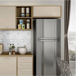 O detalhe que faz toda a diferença na sua cozinha! O Armário Aéreo de Geladeira Paris Sallêto É ideal para a complementação da sua cozinha. Ele possui espaço de armazenamento compacto dando acabamento aos seus demais móveis. Pode ser utilizado para objetos de decoração ou porta mantimentos, o que complementa ainda mais funcionalidade à peça. Além disso, possui pistão a gás para um maior conforto na abertura da porta
