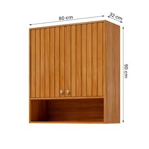 Material da estrutura: Tampos e Laterais em MDF 15mm; Prateleira e portas em MDF 12mm com ripado em MDF em 6mm;