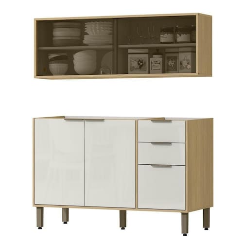 Armario Aereo E Balcao 120 Cm Glor Abgl02 Castanho Off White Mxm Castanho Off White
