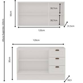 Armário Aéreo e Balcão 120cm 100%mdf Estilo Provençal Americano, no estilo provençal com conceito inspirado nas cozinhas estilo americano.