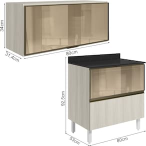Modelo: Armario Aereo E Balcao 1P 2G Vidro MDF Kali Nicioli
