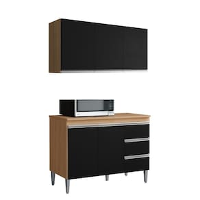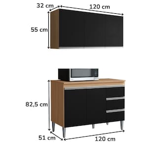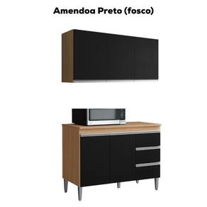 Armário Aéreo e Balcão com Tampo Andreia, ideal para otimizar o espaço da sua cozinha. Produzido em MDP 12/15 mm (fundo 3 mm) com acabamento em pintura UV. Possui portas e gavetas com dobradiças e corrediças metálicas, puxadores em alumínio e prateleiras internas. O balcão conta com pés em plástico com regulagem. Produto entregue em 03 volumes.