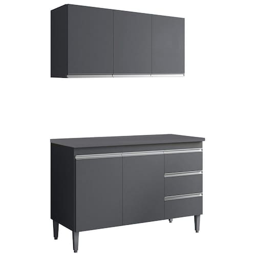 Armario Aereo E Balcao Com Tampo 120 cm Andreia Cinza REAJL