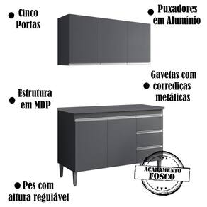 Armario Aéreo e Balcão com Tampo 120 cm Andreia, é ideal para quem busca qualidade e sofisticação para compor sua cozinha da forma que desejar. Estrutura em MDP de 12 e 15 mm, acabamento com pintura UV. Composto por 5 portas articuladas com dobradiças metálicas, 3 gavetas com corrediças metálicas com deslize suave, balcão com espaço opcional de 116 cm para colocação de pia (pia não inclusa), possui tampo resistente, prateleiras internas para organizar seus utensílios, puxadores em alumínio, e acompanham pés em PVC com regulagem. Você pode adquirir outras peças dessa composição que são vendidas separadamente no nosso site. Produzido com controle de qualidade e com excelente acabamento. Estes móveis chegarão na sua casa separados em 3 volumes.