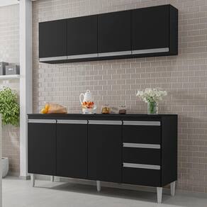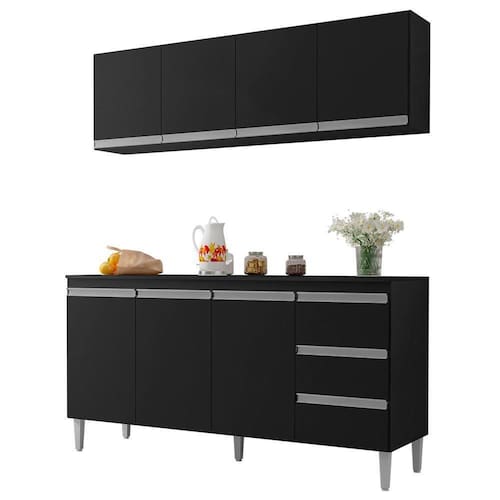 Armário Aéreo e Balcão Com Tampo 160 cm Andreia, é ideal para quem busca qualidade e sofisticação para compor sua cozinha da forma que desejar. Estrutura em MDP de 12 e 15 mm, acabamento com pintura UV. Composto por 7 portas articuladas com dobradiças metálicas, 3 gavetas com corrediças metálicas com deslize suave, balcão com espaço opcional de 155 cm para colocação de pia (pia não inclusa), possui tampo resistente, prateleiras internas para organizar seus utensílios, puxadores em alumínio, e acompanham pés em PVC com regulagem. Você pode adquirir outras peças dessa composição que são vendidas separadamente no nosso site. Produzido com controle de qualidade e com excelente acabamento. Estes móveis chegarão na sua casa separados em 3 volumes.