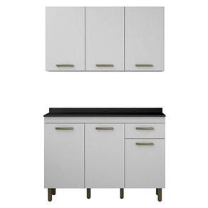 Armário Aéreo e Balcão de Cozinha Ambiente São Luís Branco - Valdemóveis