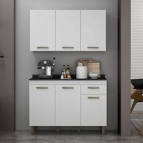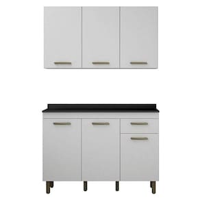 Armário Aéreo e Balcão de Cozinha São Luís Branco - Valdemóveis