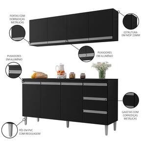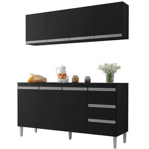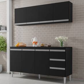 Hora de renovar sua Cozinha e temos a opção perfeita para você, confira o Armário Aéreo e Balcão Gabinete com Tampo 160cm Andréia Preto, da AJL Móveis!